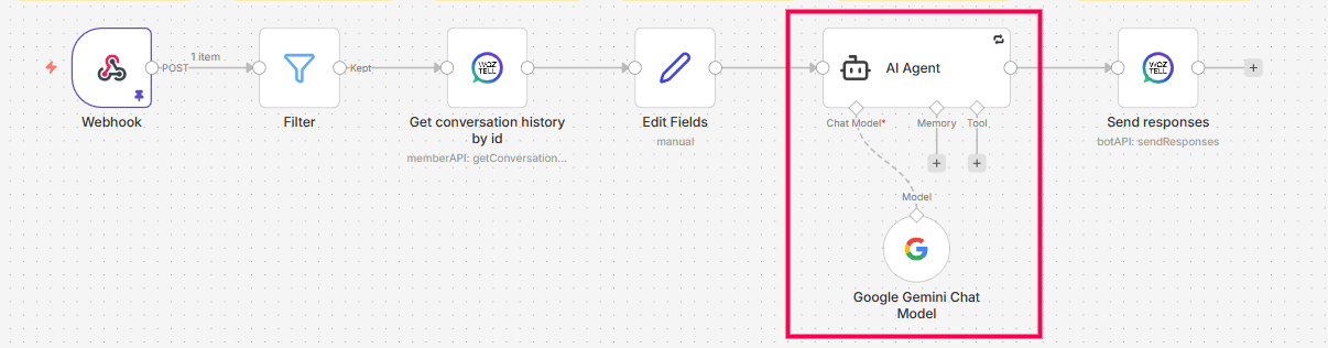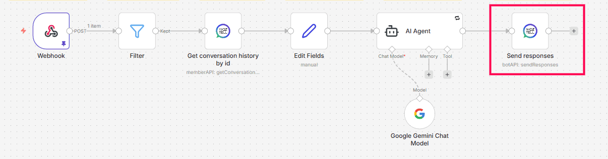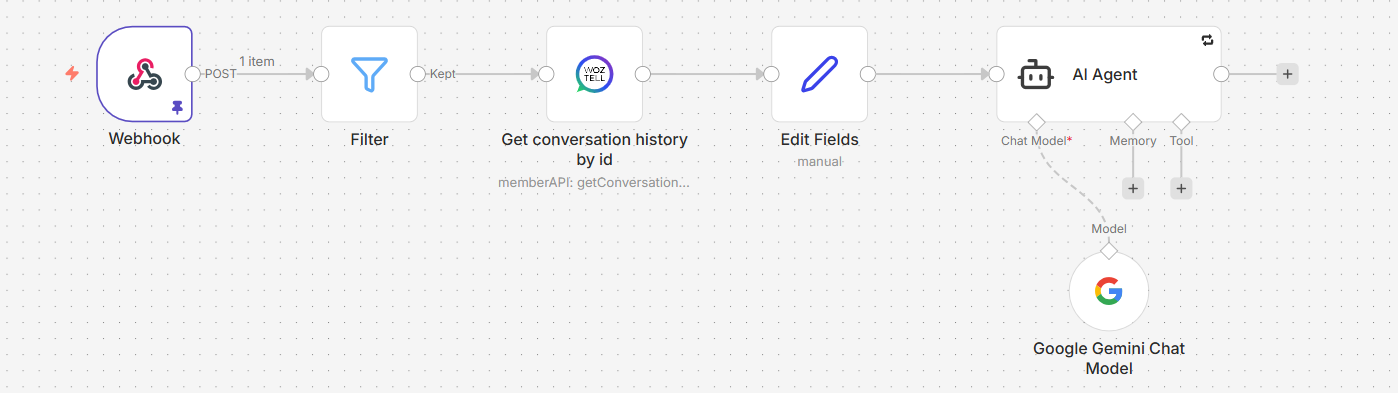 Instead of replying manually every time, you can automate intelligent responses using n8n, WOZTELL, and an AI model like Google Gemini.