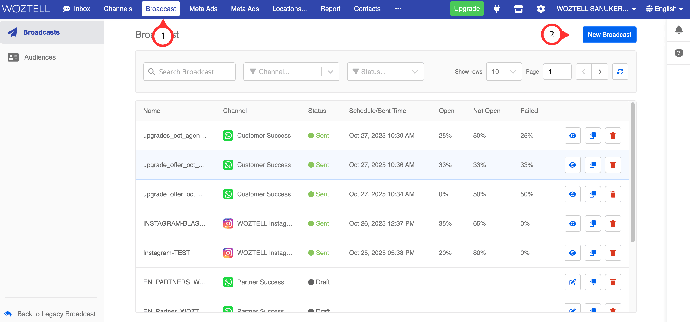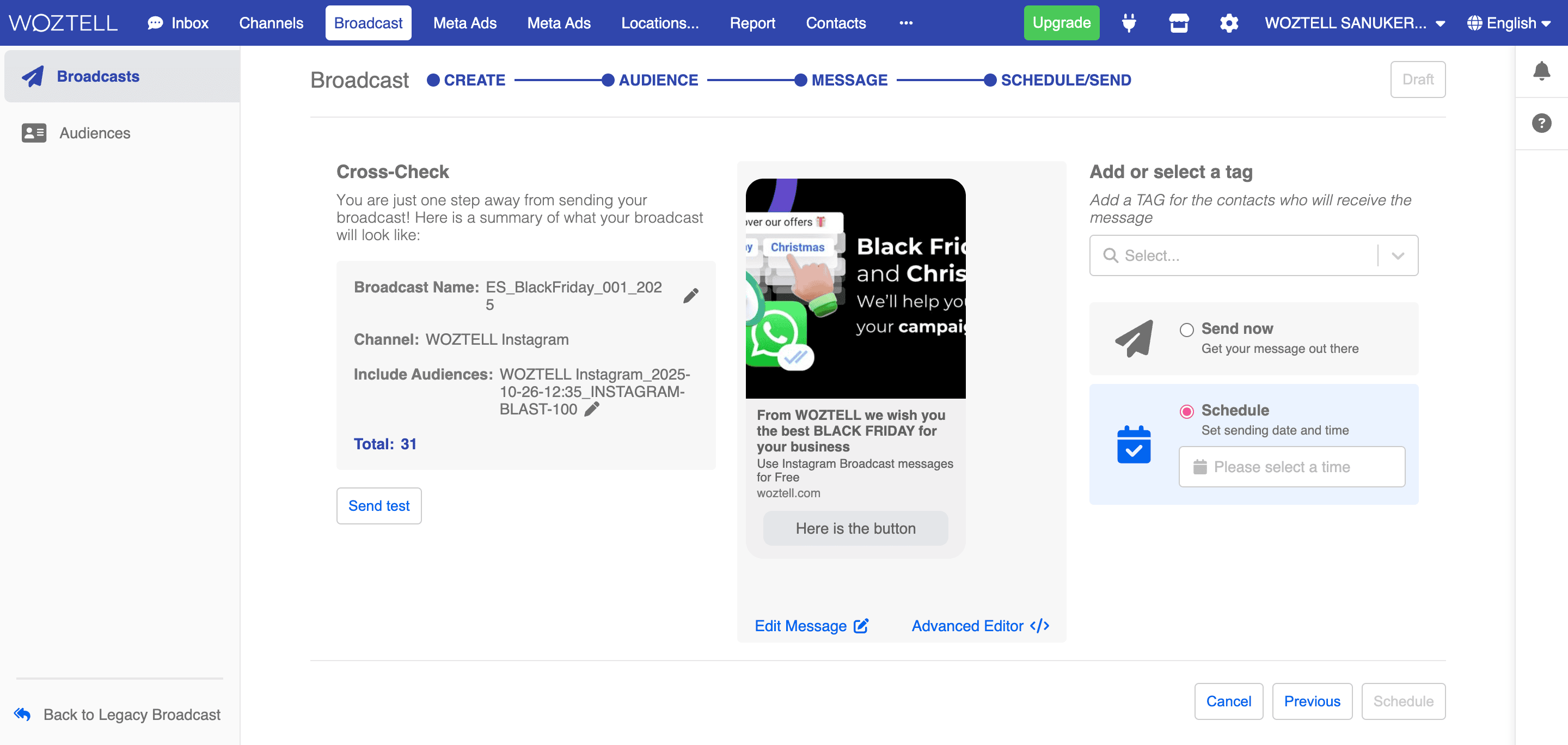 WOZTELL uses the official Meta API (Broadcast API) → Follows all rules, is not spam, and does not require a password.