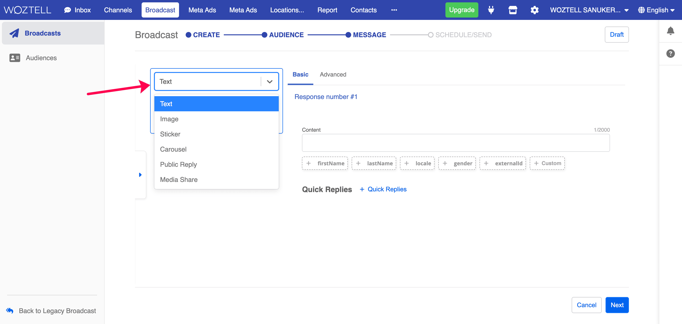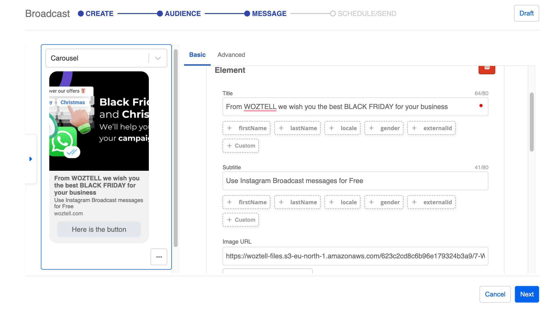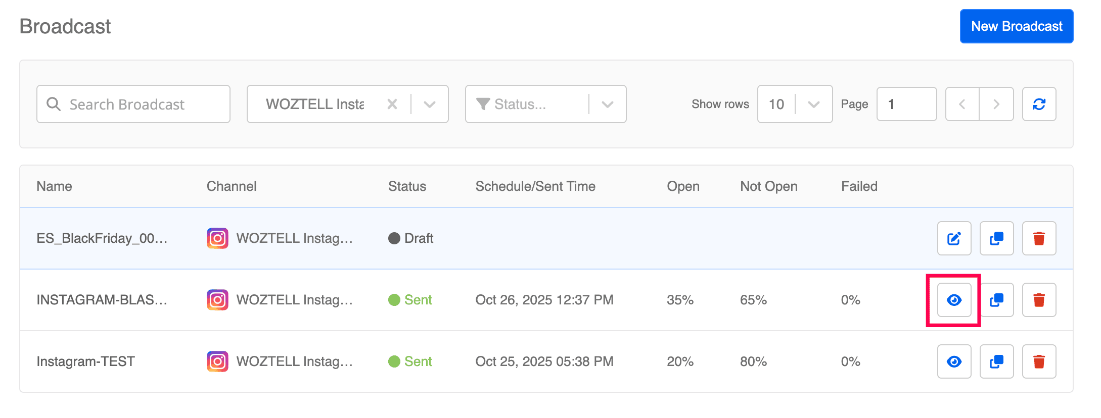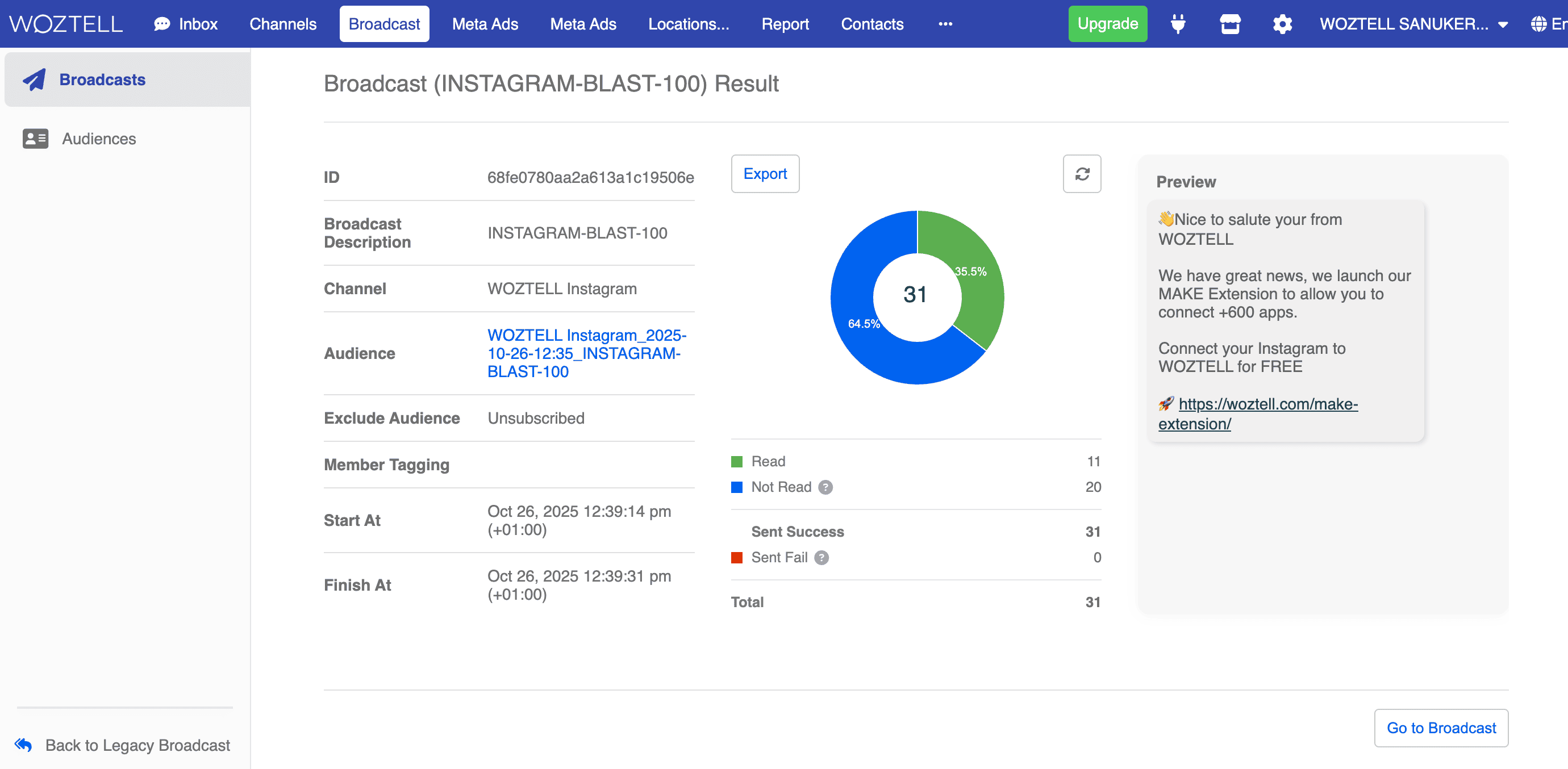 Bulk Broadcast Message Deliveries on Instagram with WOZTELL