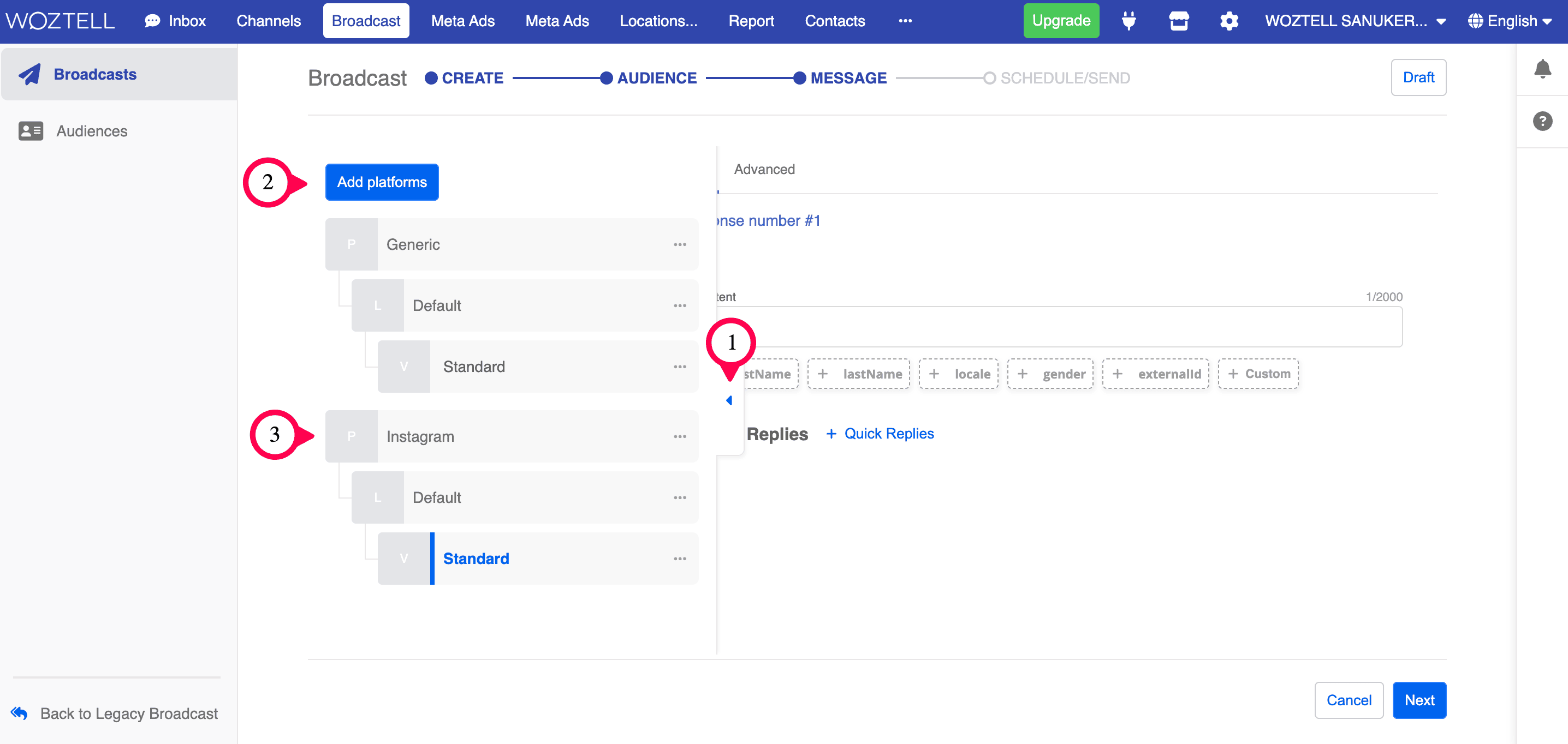 1. Make sure we are on Instagram, if not, simply add the Platform so that you have Instagram-specific options
