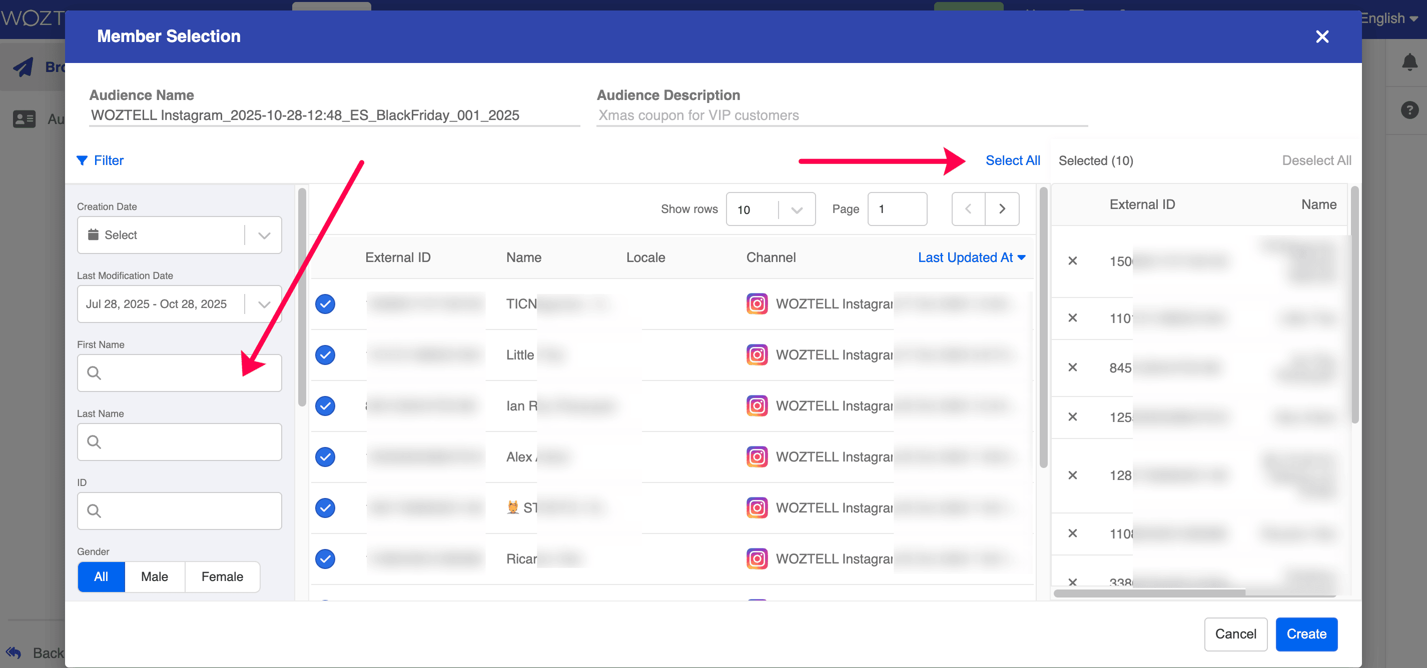 List of contacts that is automatically updated when they meet the configured filters in the WOZTELL platform.