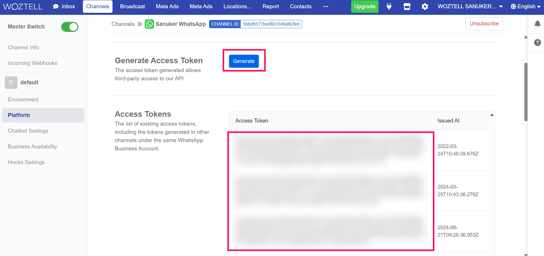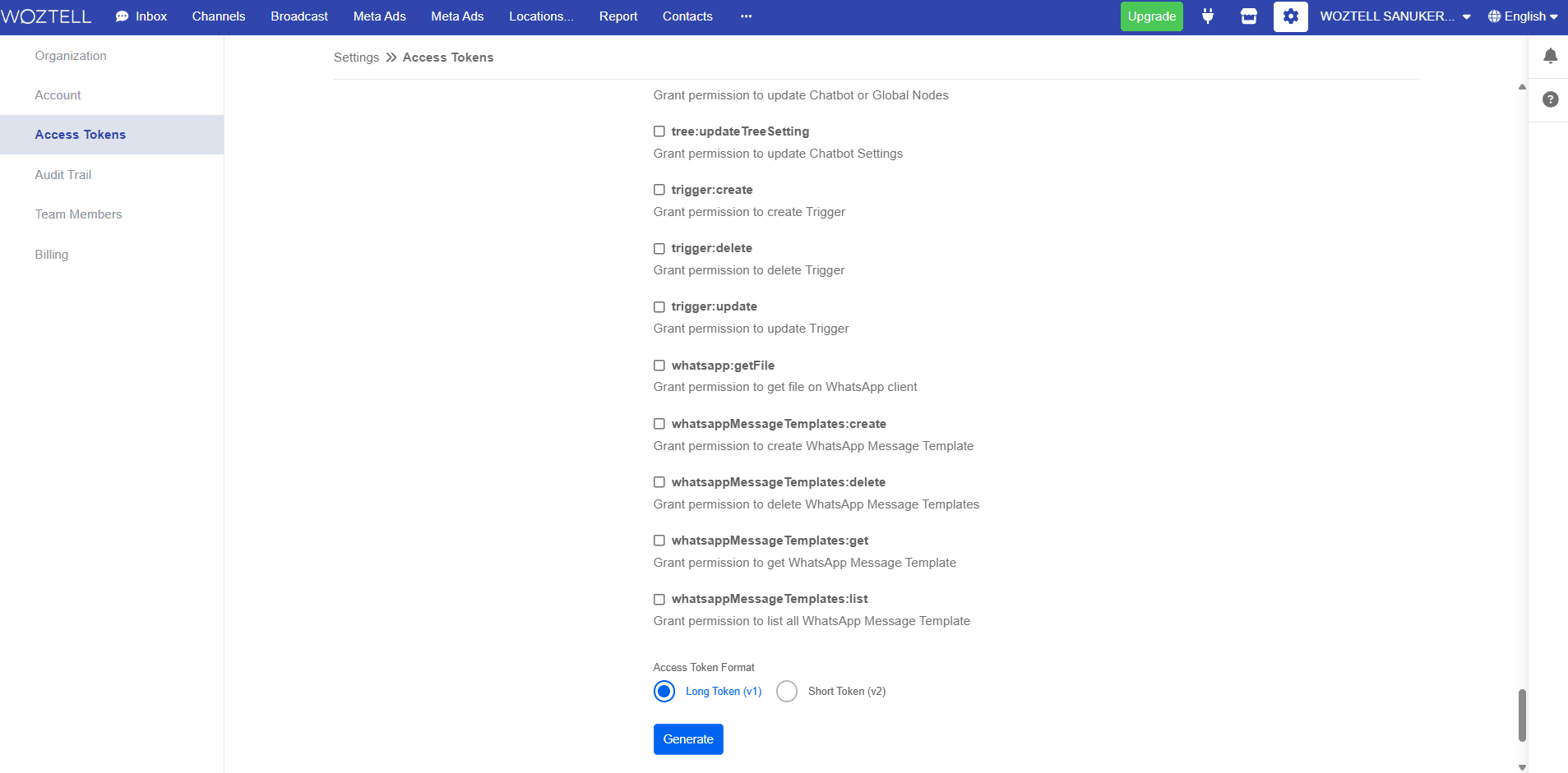 A paid WOZTELL account with an active WhatsApp Business account (WABA) set up in WOZTELL