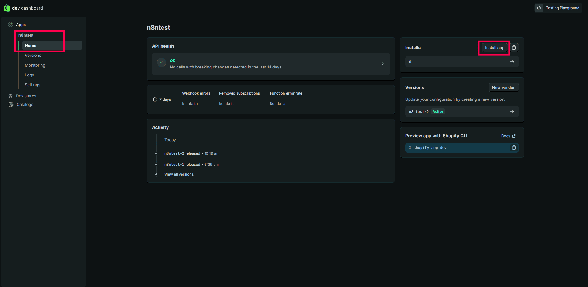 11. Return to the dev dashboard, select the app you just created, navigate to the Settings page to locate your Client ID and Client Secret, then copy and paste them into the n8n credentials section.