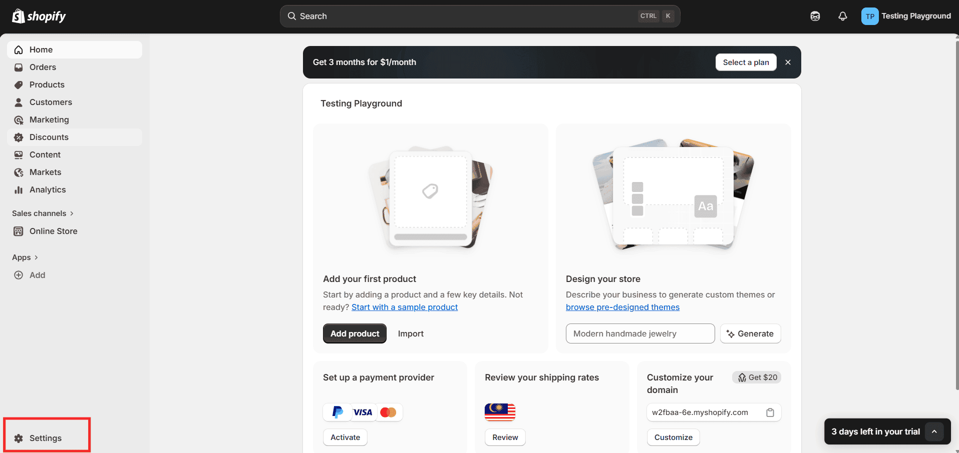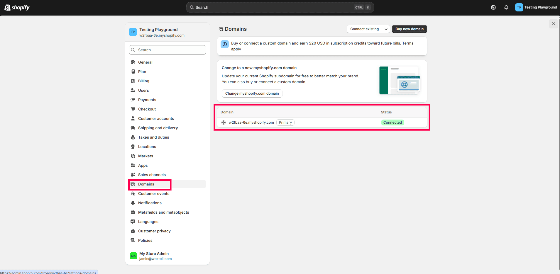12. Finally, to access the shop subdomain, go to Shopify Settings > Domains.