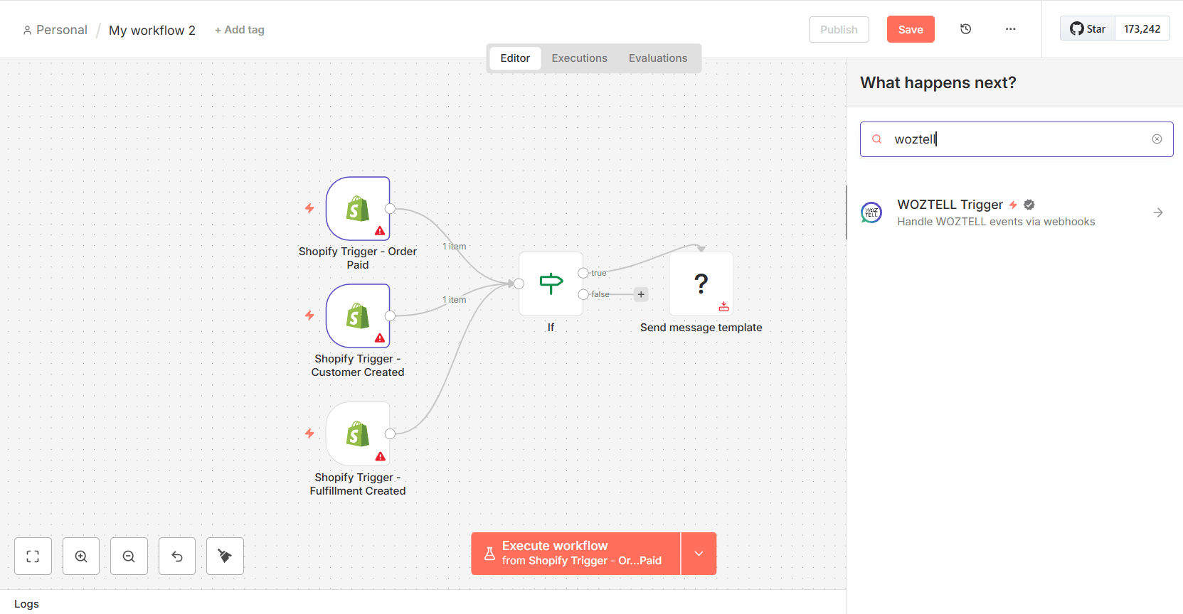 What you’ll build: Shopify triggers → n8n workflow → WhatsApp message sent via WOZTELL