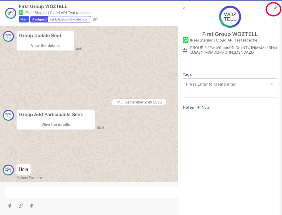 Within the group conversations, the name of the sender will be registered. In this case, you can see the name assigned in the contact's profile within the group:
